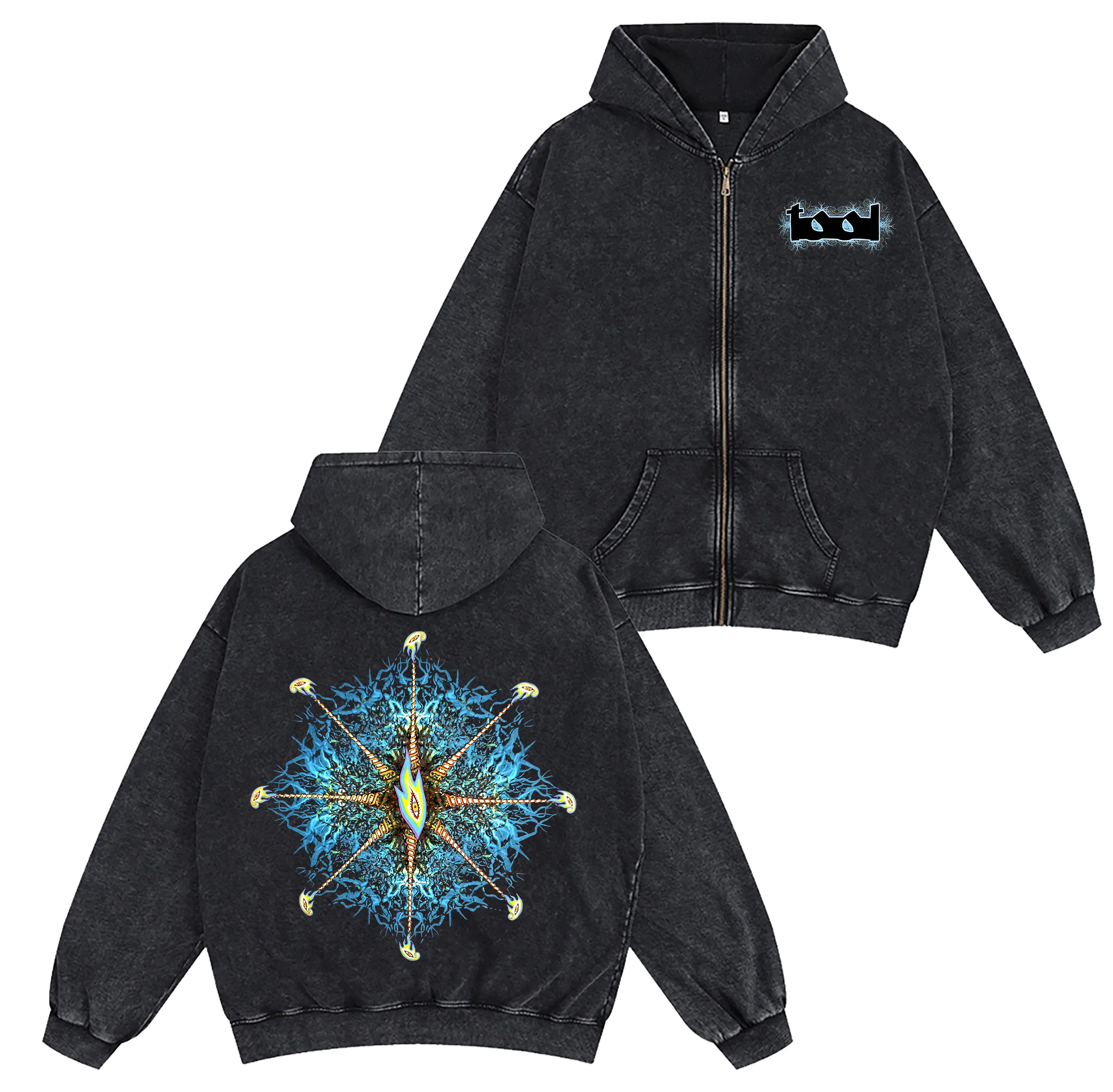 ToolFans Unisex Washed Zip Up Hoodie